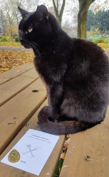 Robert the Allotment cat and his token, image by Betty Farruggia